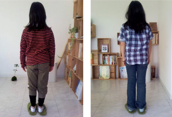 (写真でみると左へ足裏が正中線からずれている)